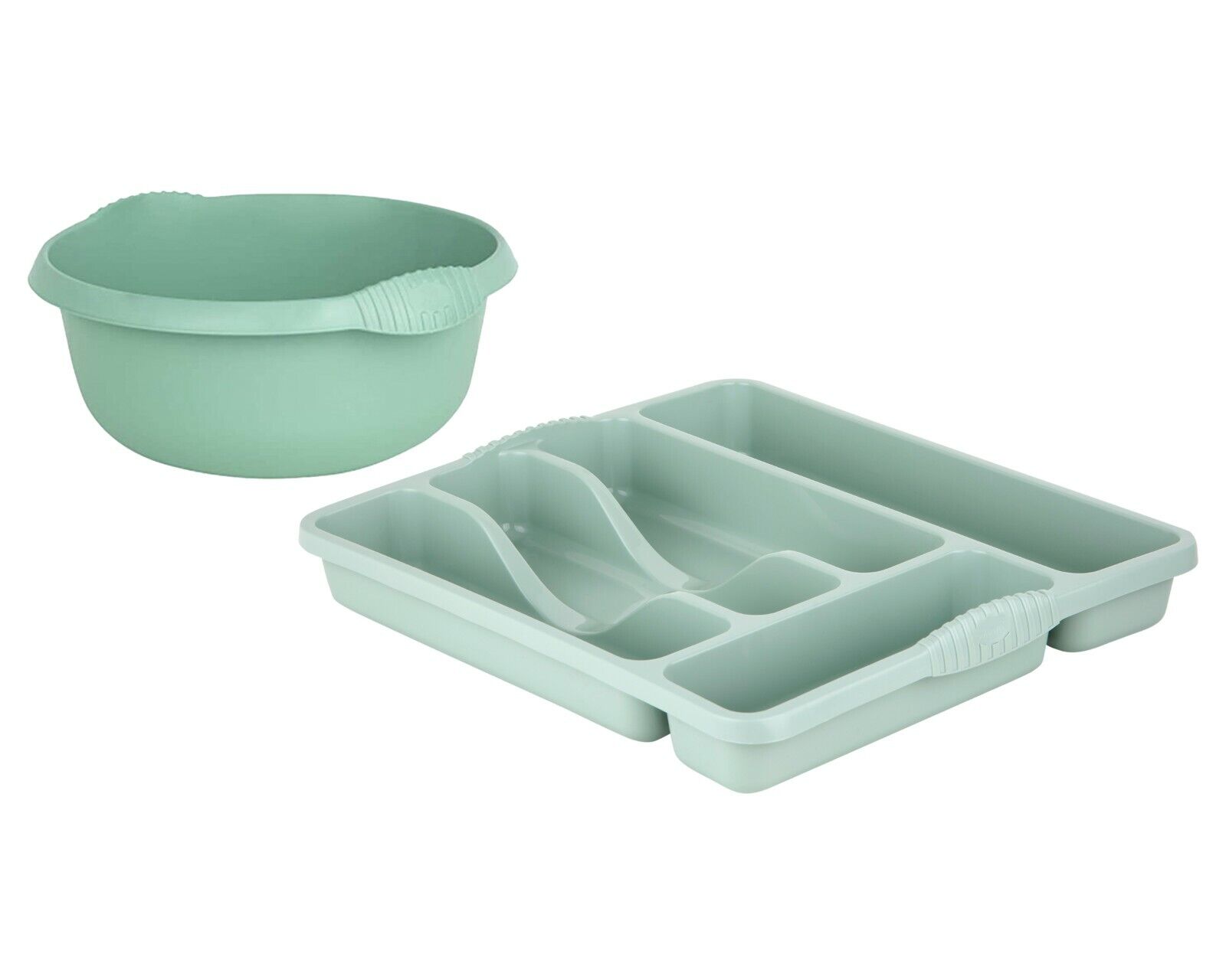 Silver Sage Combo Set of- 32cm Round Washing Up Bowl + Small Cutlery Tray Home