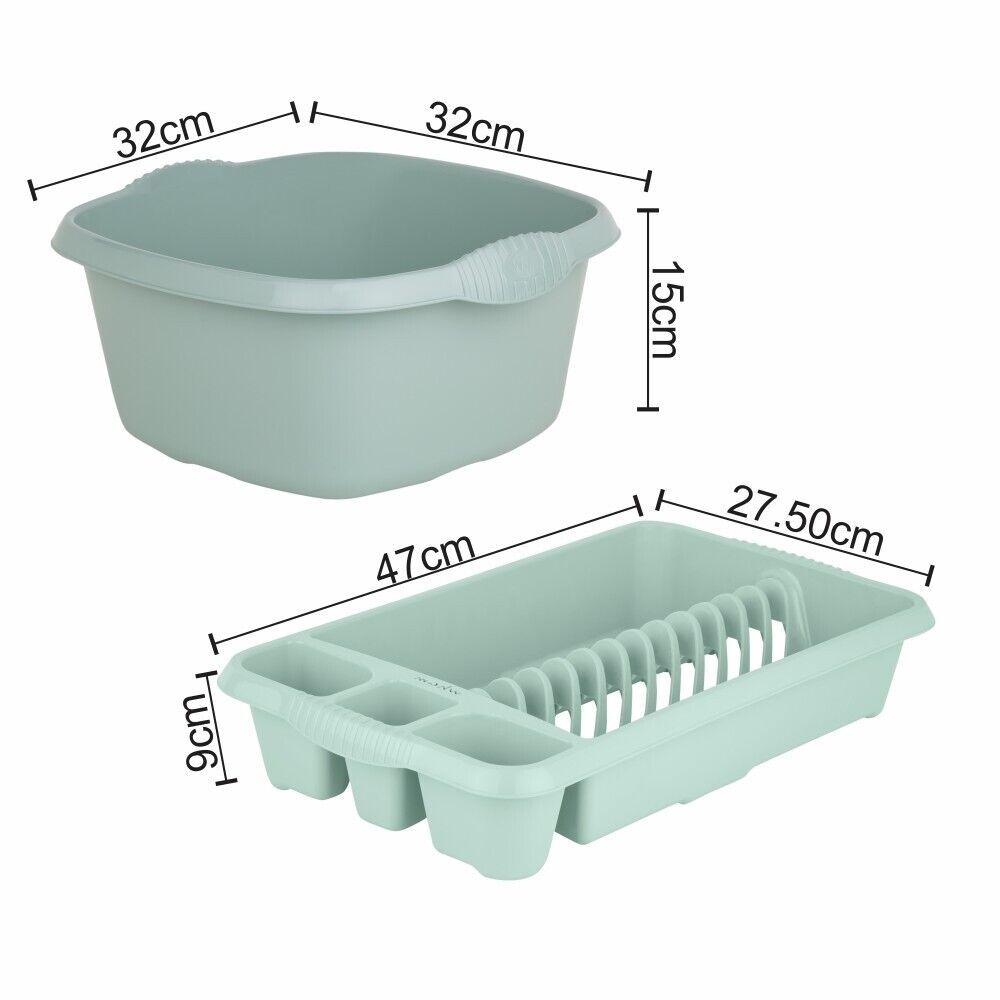 Plastic Kitchen Set 9L Small Square Washing Up Bowl + Medium Dish Drainer Rack