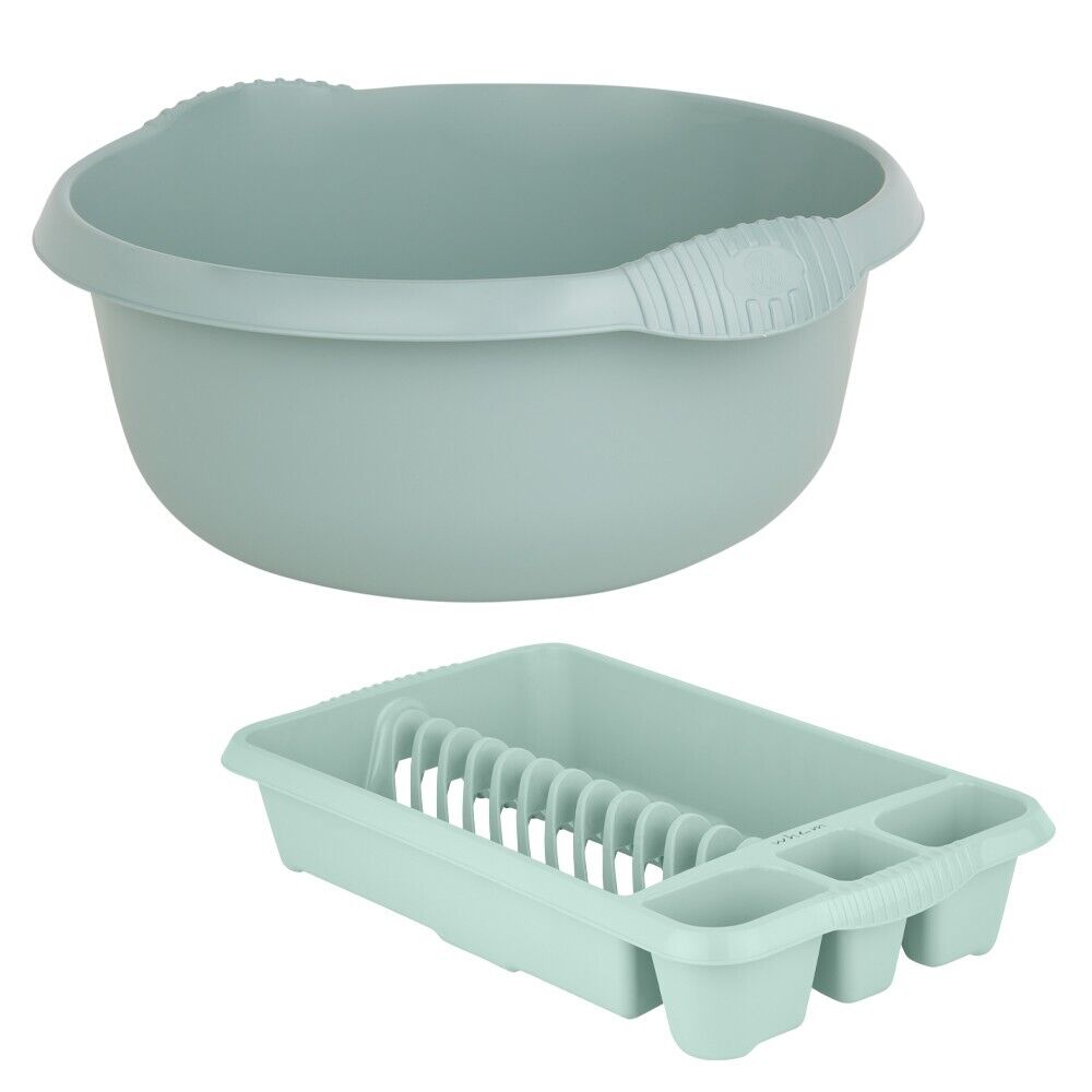 Set of Small Round Plastic Washing Up Bowl 36cm + Medium Dish Drainer Kitchen UK