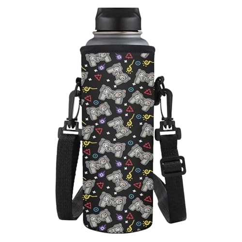 Yexignaon Small Gamer Water Bottle Cover Black Insulated Water Bottle Sling Holder Bag Glass Cup Protective Cover with Adjustable Shoulder Strap