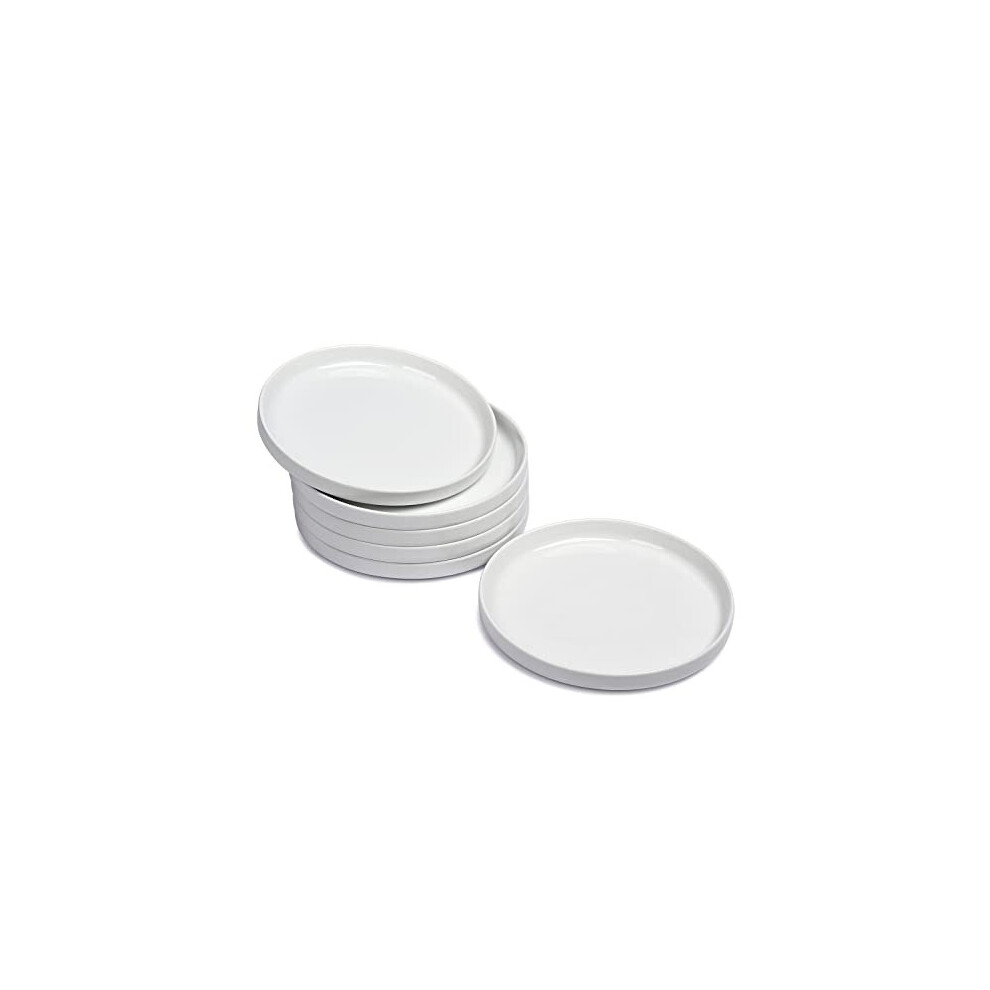 WishDeco Small Dinner Plates Set of 6, White Porcelain Dessert Plates, Appetizer Salad Plates for Pasta Snack Cake Bread, Dishwasher Microwave & Oven
