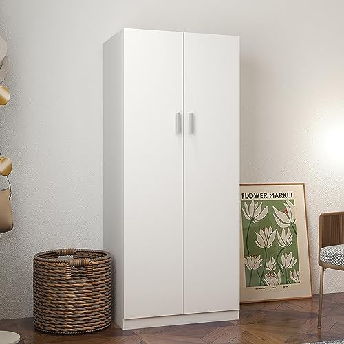 2 Door Double Wardrobe for Small Bedroom Bedroom Furniture Robe with Hanging Rail, 72 x 49 x 169 cm (White)