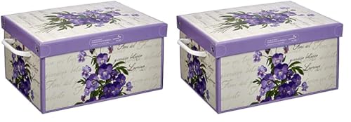 Lavatelli KANGURU Storage Box in Recyclable Cardboard lid, Storing Clothes, Wardrobe, Toys, White Small Size 35 x 25 x 17.5 cm, Scented Violet (Pack of 2)