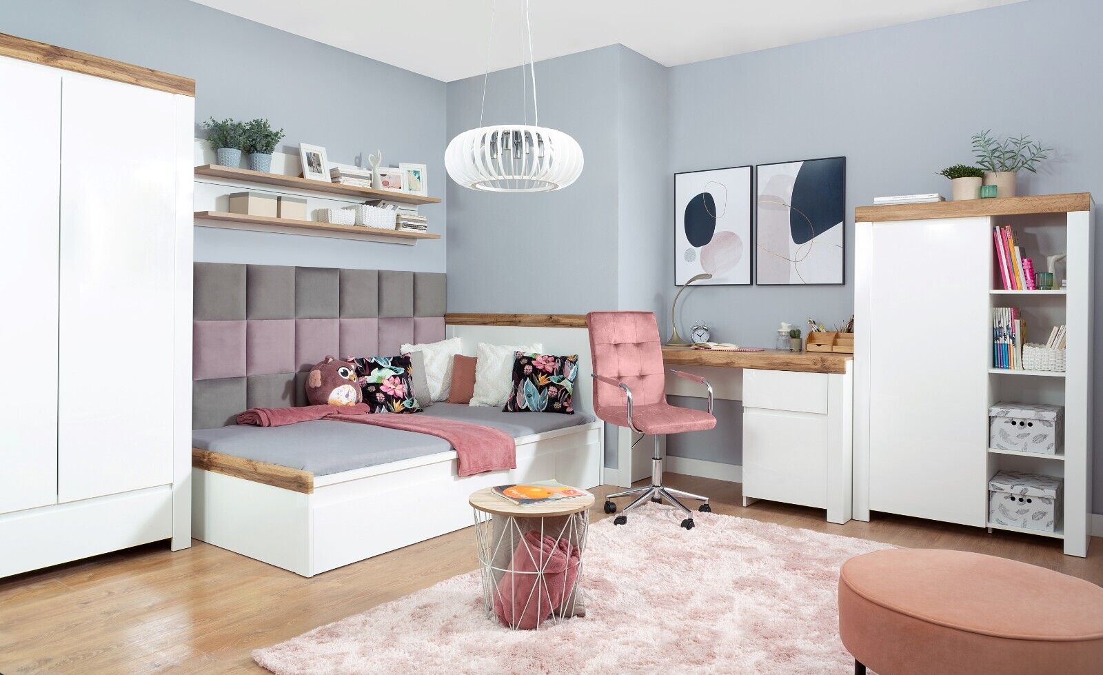 Kids Bedroom Set 120cm Small Double Wardrobe Desk Shelving White Gloss Oak Holte
