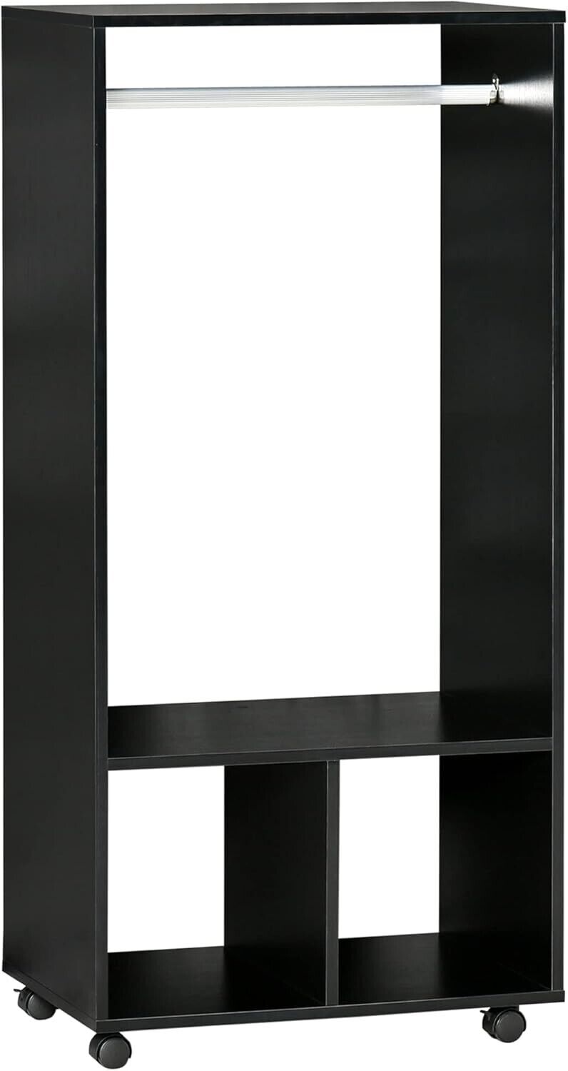 HOMCOM Open Wardrobe for Bedroom, Small Wardrobe on Wheels with Clothes Rail, Storage Shelves, Mobile Garment Rack for Clothes Storage, Cloakroom, Hallway, White