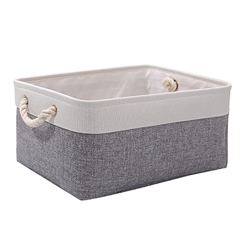 PWVMWM Small Storage Box with Handles, Foldable Wardrobe Baskets for Storage, Canvas Linen Storage Baskets for Clothes, Toys, Towels, Office Products (Grey and White, small)