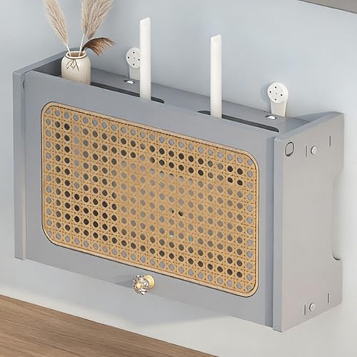 LIMENQIN Floating Router Storage Box, Wall Mounted WiFi Router Hidden Box, Cable Management Organizer, Rattan Door, Easy Assembly, Decorative Small TV Stand(Grey,60x11.5x23cm)