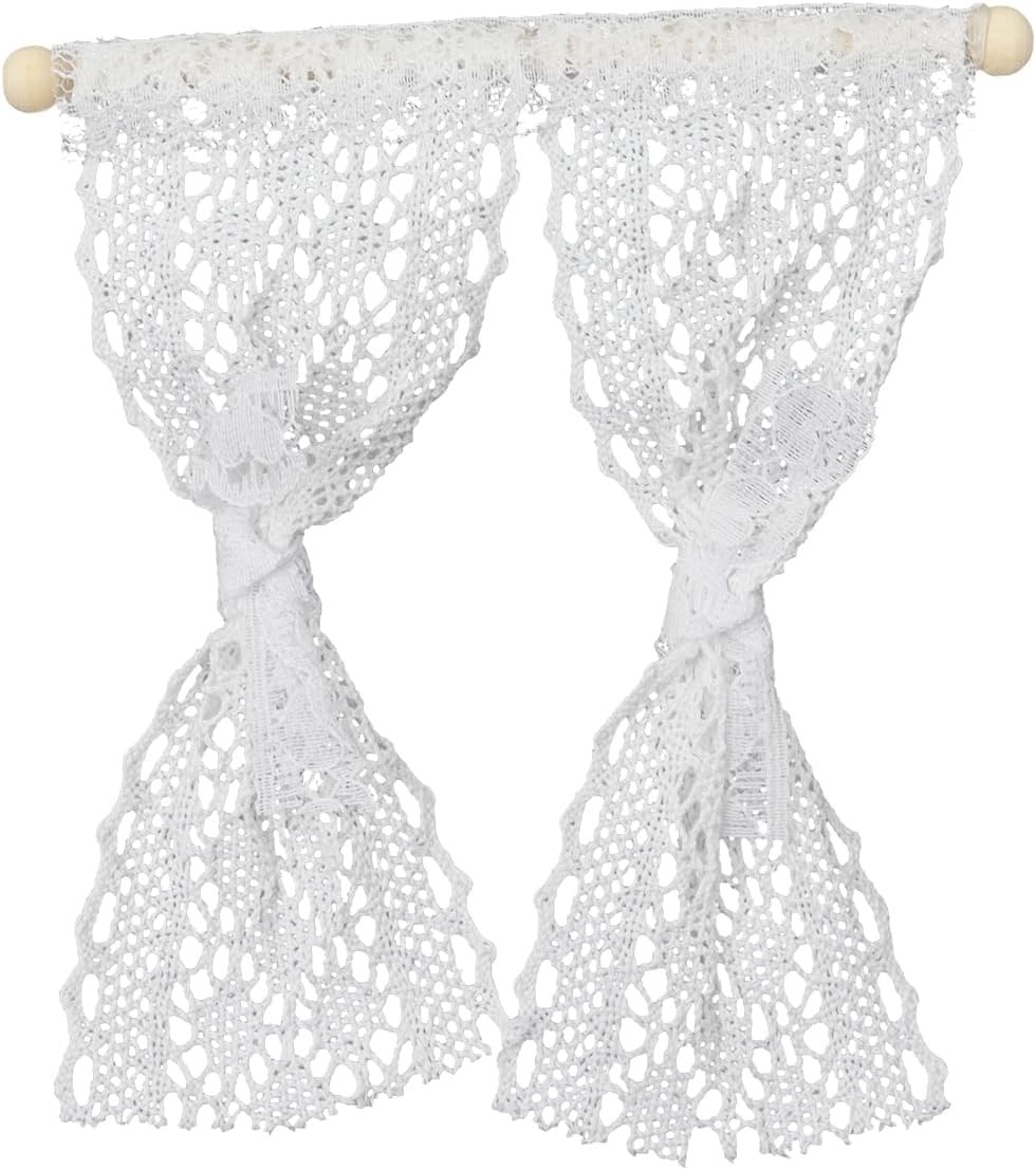 Pack Of 2 Dollhouse Curtains Small Window Curtains Door Lace Trim Accessories W