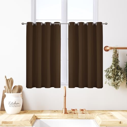 VEHEDE Blackout Short Small Window Curtains 33 Inch Drop, Eyelet Thermal Insulated Curtain for Cafe, Soft Kitchen Curtains, Bedroom Curtain & Drapes, W46 x L33 Inch, Brown, 2 Panels