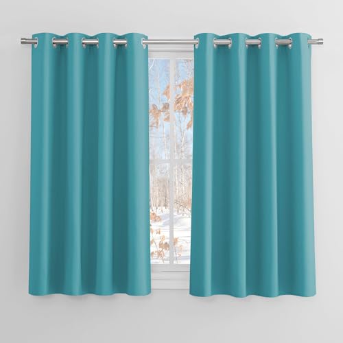VEHEDE Short Small Window Blackout Curtains for Kitchen, Eyelet Thermal Insulated Curtain for Cafe, Soft Bedroom Curtains, Living Room Curtain & Drapes, W46 x L45 Inch, Teal, 2 Panels