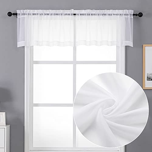 Chyhomenyc Sheer White Valances for Windows 2 Pack, Small Window Curtains for Living Room Bathroom Cafe Laundry Basement, Modern Top Dual Rod Pocket Voile Curtain, 42W x 14L inches, White