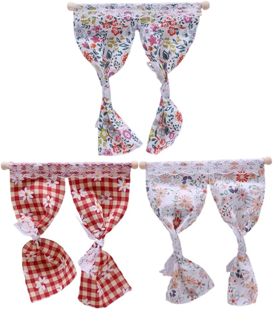 ifundom 3pcs Miniature Dollhouse Lace Curtains Small Window Curtains Tiny House