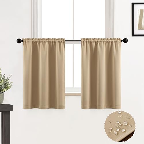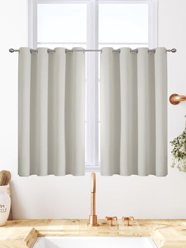 VEHEDE Short Small Window Blackout Curtains 33 Inch Drop, Eyelet Thermal Insulated Kitchen Curtains, Soft Cafe Curtains & Drapes, W46 x L33 Inch, Light Beige, 2 Panels