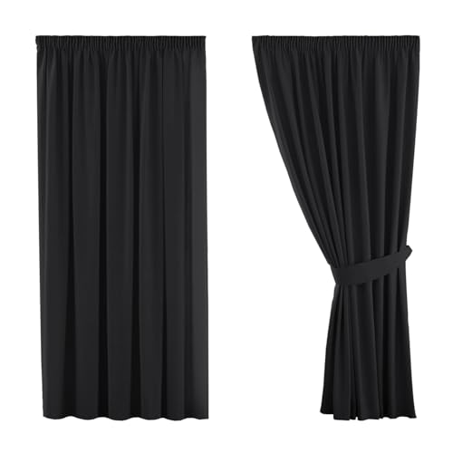 H.Versailtex Black Blackout Thermal Curtains for Bedroom Blackout Pleat Curtains 54 Drop Small Window Curtains for Room Darkening & Noise Reducing, 2 Pieces, 46" Width x 54" Drop, Black