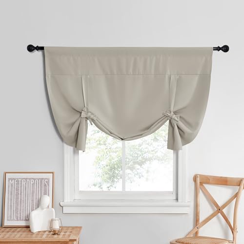 NICETOWN Small Window Curtains for Bathroom Blackout Thermal Insulating Tier for Kitchen - Short Rod Pocket Tie Up Curtains for Kitchen, 1 PC, 52" W x 45" L, Natural