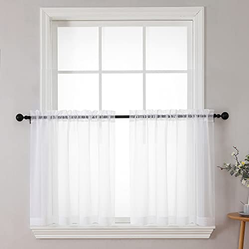 Chyhomenyc Sheer White Tier Curtains 24 Inch Length Set, Small Window Curtains Treatment for Bathroom/Living Room/Cafe/Basement, Short Voile Curtain Tiers 42in x 24in, Rod Pocket, 2 PCS