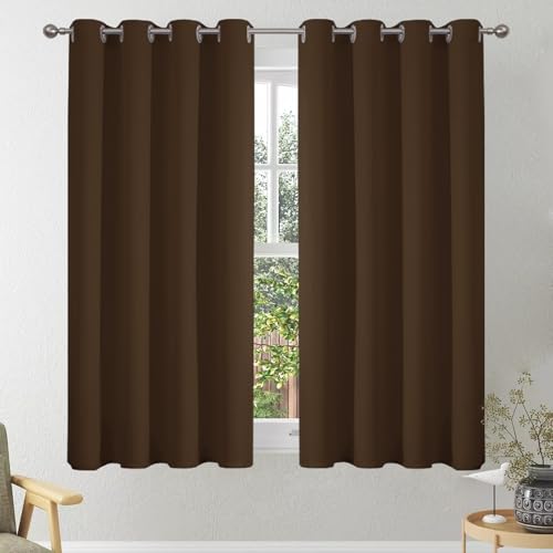 VEHEDE Blackout Curtains 54 Inch Drop, Eyelet Thermal Insulated Short Curtain for Bedroom, Soft Small Living Room Window Curtains & Drapes, W46 x L54 Inch, Brown, 2 Panels