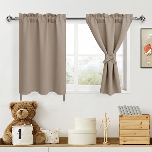 DWCN Short Blackout Curtains for Bedroom, Short Tiers for Small Window, Thermal Curtains for Office, 24 Inch Curtains for Kitchen, Basement - W30 x L24 Inch, Camel, Set of 2