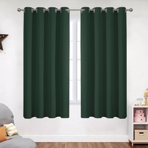 VEHEDE Blackout Curtains 54 Inch Drop, Eyelet Thermal Insulated Short Curtain for Bedroom, Soft Small Living Room Window Curtains & Drapes, W46 x L54 Inch, Blackish Green, 2 Panels