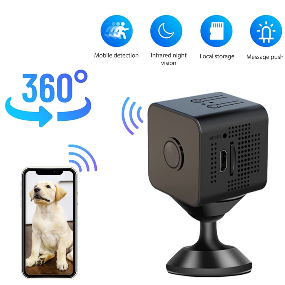 Mini Wireless WiFi Camera Two-Way Audio and Video,Nanny Cam Small Dog Pet Cameras,Home Security Camera with Night Vision, Motion Detection, black