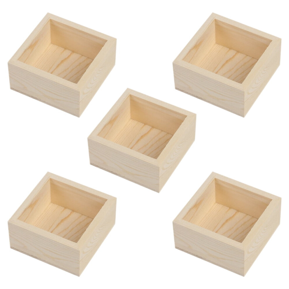 5Pcs Unfinished Bonsai Box Small Wooden Boxes Rustic Square Wood Box Craft Organizer