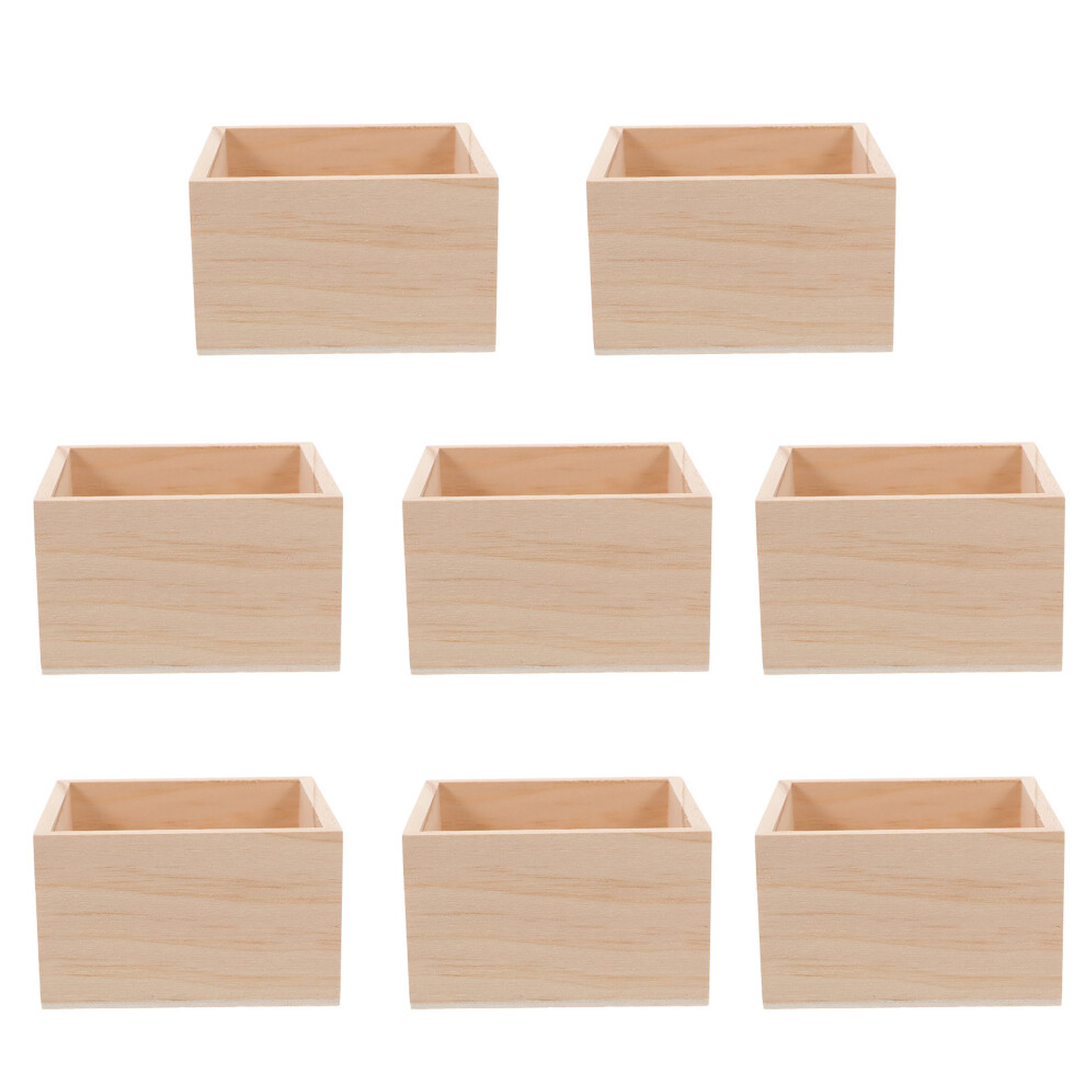 8Pcs Small Wooden Craft Boxes Light Yellow DIY Organizer Rustic Style