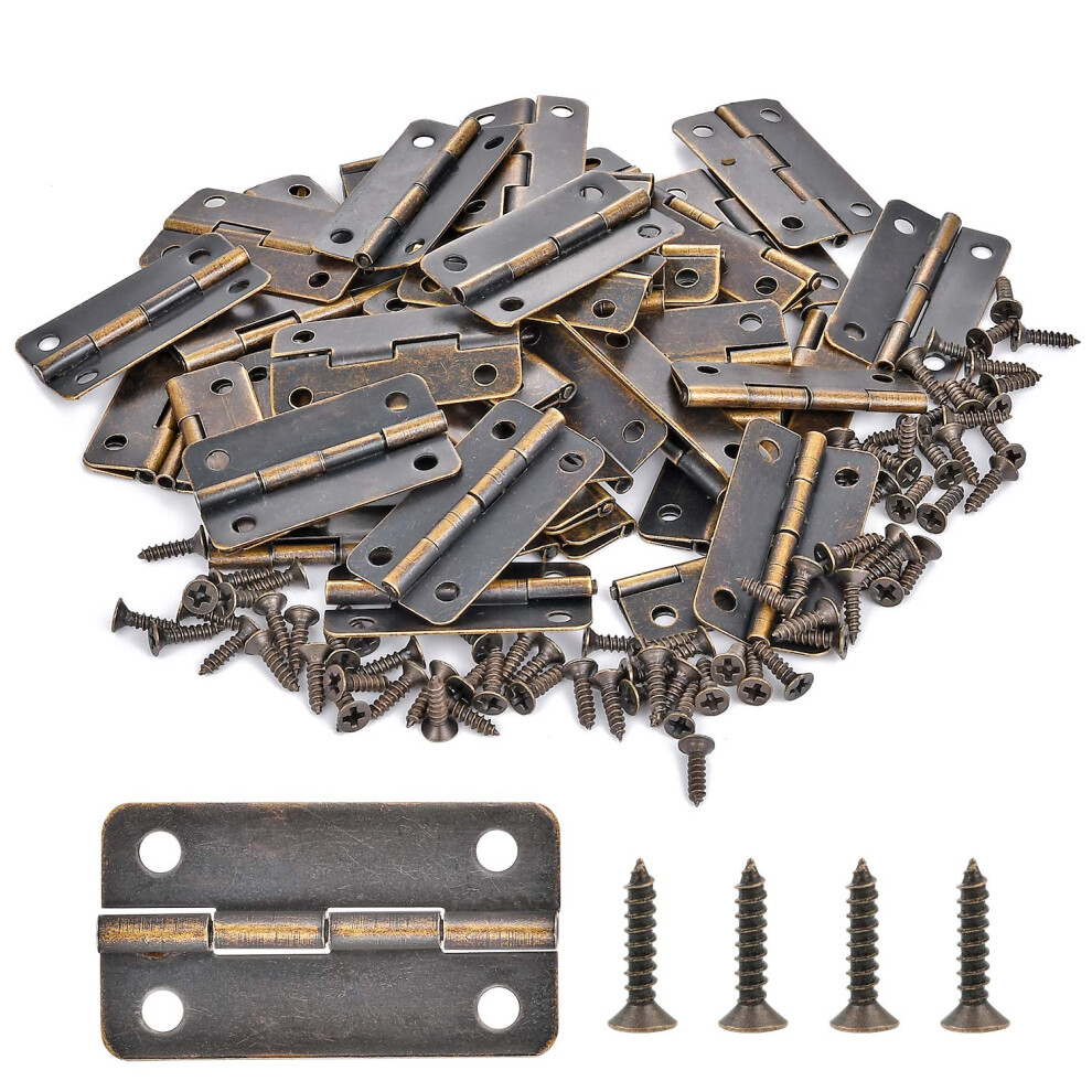 YCSJ 60 Pieces Antique Bronze Mini Hinges, Zinc Alloy, Retro & Elegant Style, Suitable for Small Wooden Jewelry Boxes & Crafts