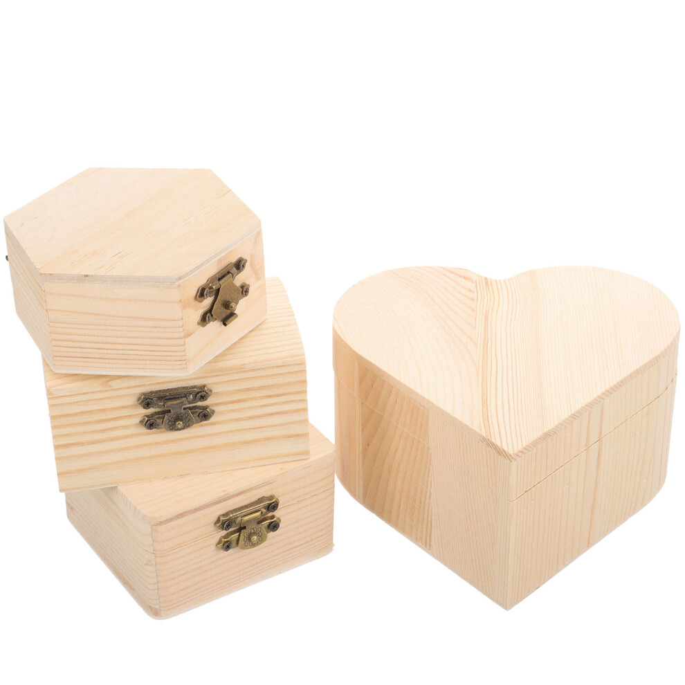4pcs Unfinished With Lock Wooden Storage Box Small Wooden Boxes