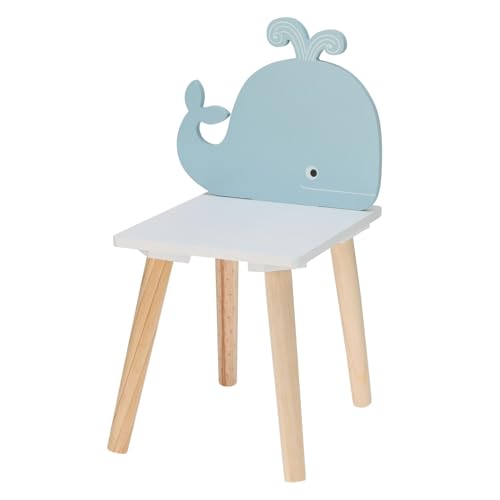 Carousel Home Children’s Wooden Whale Chair | Small Square Wooden Animal Stool for Kids | Childs Bedroom Nursery Furniture - 24x29.5x52cm