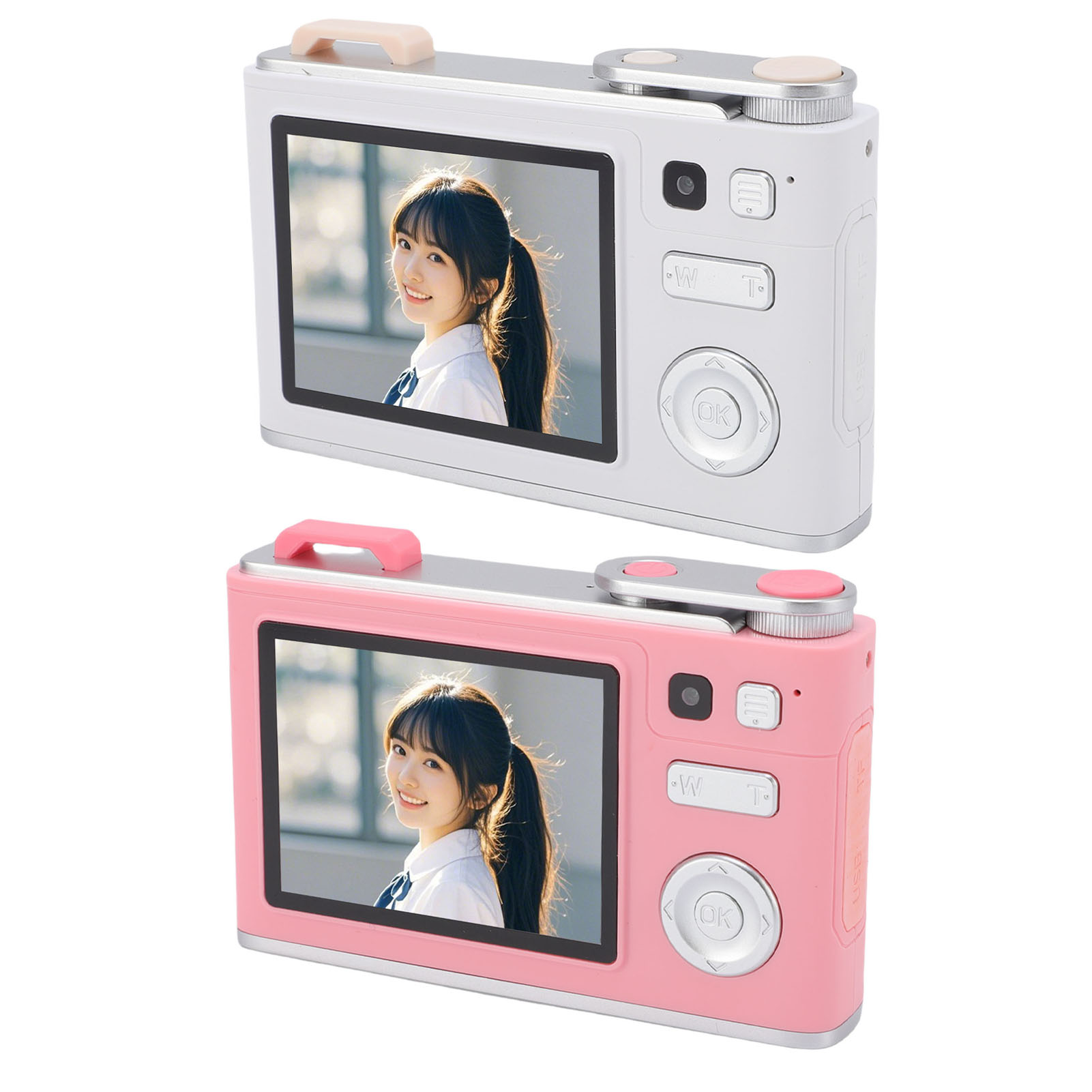 Pink Digital Camera 1080P HD 48MP 8X Zoom Front Rear 2 Lens Portable Small OU