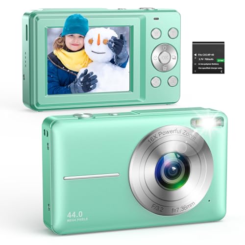 Digital Camera 1080P 44MP Compact Digital Camera 16X Digital Zoom Easy Vlogging Camera Portable Small Camera for Children Teenagers Seniors Beginners Green