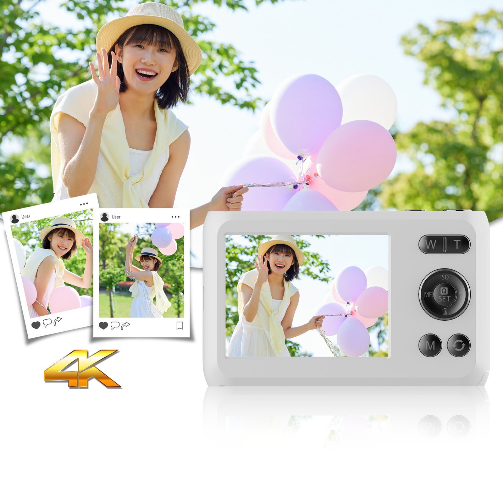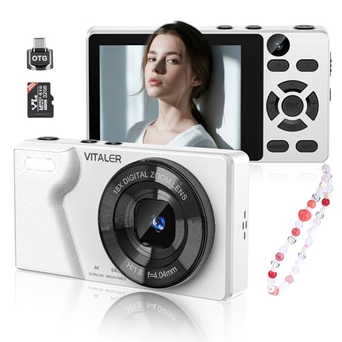 Digital Camera 4K 64MP Compact Camera with Dual Lens,2000mAh Battery,2.8" IPS Screen,18X Digital Zoom,32GB Micro SD Card and OTG Adapter Auto-Focus Small Camera for Kids,Teenagers,Beginners,White