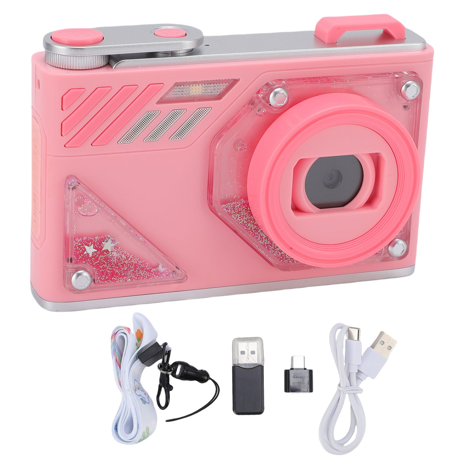 Digital Camera 4K 64MP Compact Camera with Dual Lens,2000mAh Battery,2.8" IPS Screen,18X Digital Zoom,32GB Micro SD Card and OTG Adapter Auto-Focus Small Camera for Kids,Teenagers,Beginners,Pink