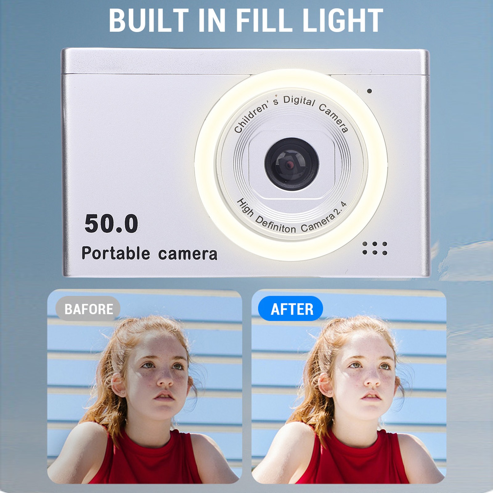 Digital Camera, 2.8 Inch Ips Color Screen 1080p 50mp 16x Zoom Fill Light Built in Microphone Rechargeable 800mah Portable Camera, Small Camera | Camera for Travel (64GB)