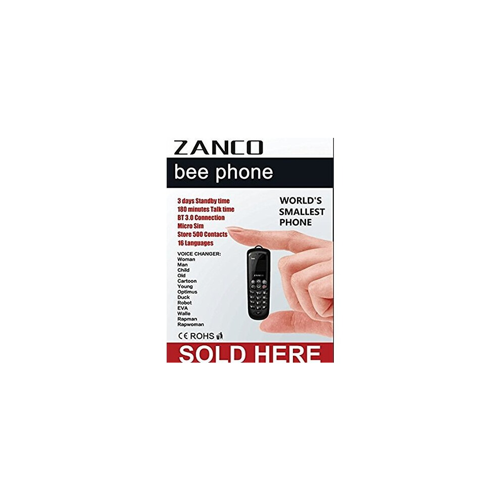 2019 Zanco Bee (B33) Phone Worlds Smallest Thinnest Mobile 13 Voice Changers Sms Bt Music Bt Dialer Mp3 Unlocked Ce Rohs Wcdma & Gsm Plastic Sold...
