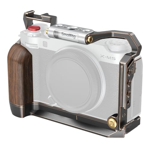 SmallRig "Retro" Cage for FUJIFILM X-M5, with Built-in Wooden Handgrip and Quick Release Plate for Arca, Includes Windshield/Hot Shoe Cover/Shutter Release Button - 4892
