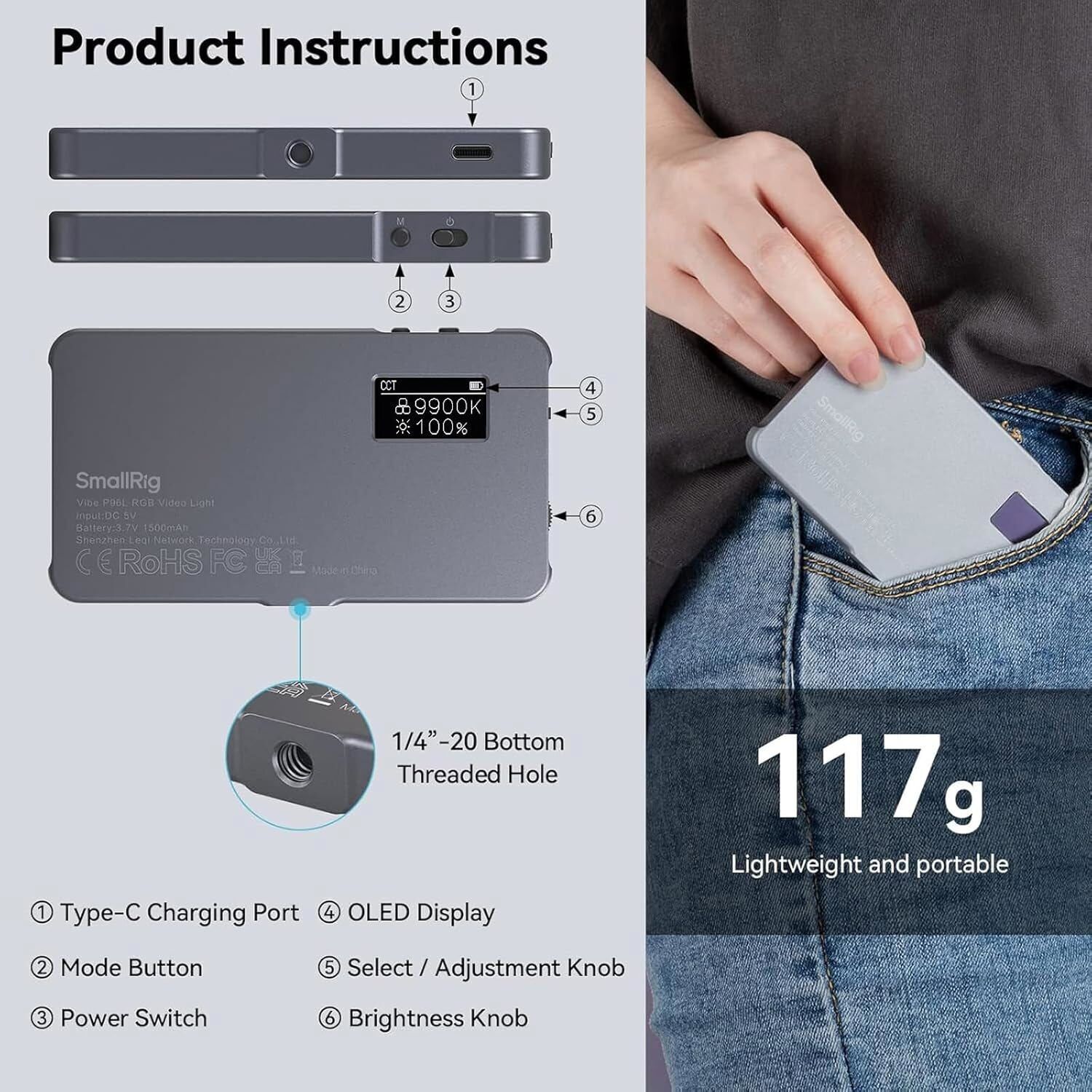SmallRig P96L RGB Video Light, Full Color LED DSLR Lighting for Photography