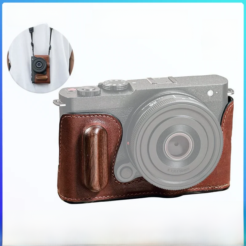 SmallRig S9 Leather Half Case, Camera Leather Case for Panasonic LUMIX S9 Built-in Wooden Grip And Strap Hole for Tripod -4703