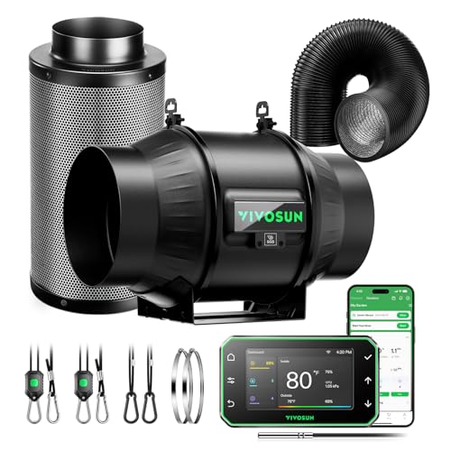 VIVOSUN PRO T6 Smart Air Filtration Kit, 15 cm AeroZesh T6 Duct Fan with GrowHub E42A, Carbon Filter & Air Duct, Cooling & Ventilation System for Grow Tent, Hydroponics, Indoor Growing