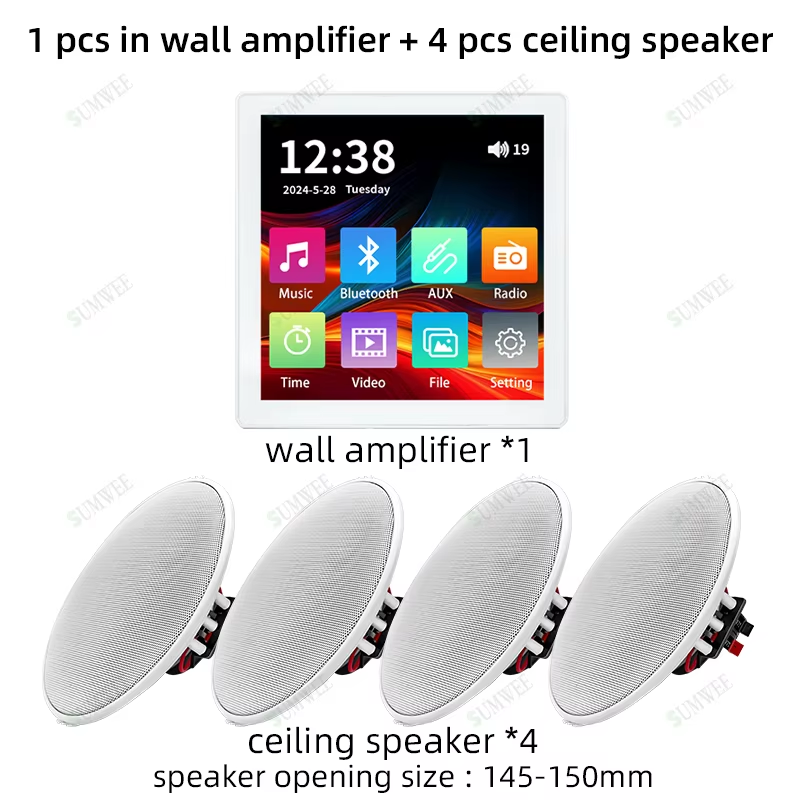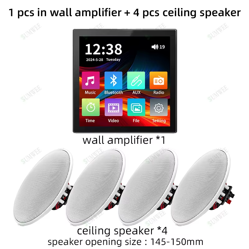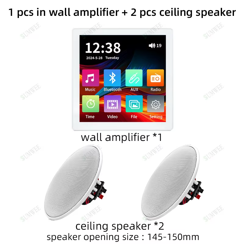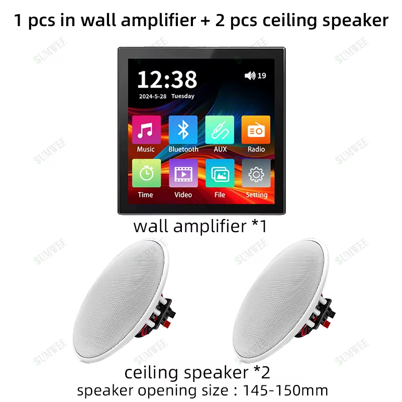 Smart Bluetooth Wall Amplifier 2.8" HD Touch Screen 25W Ceiling Speaker