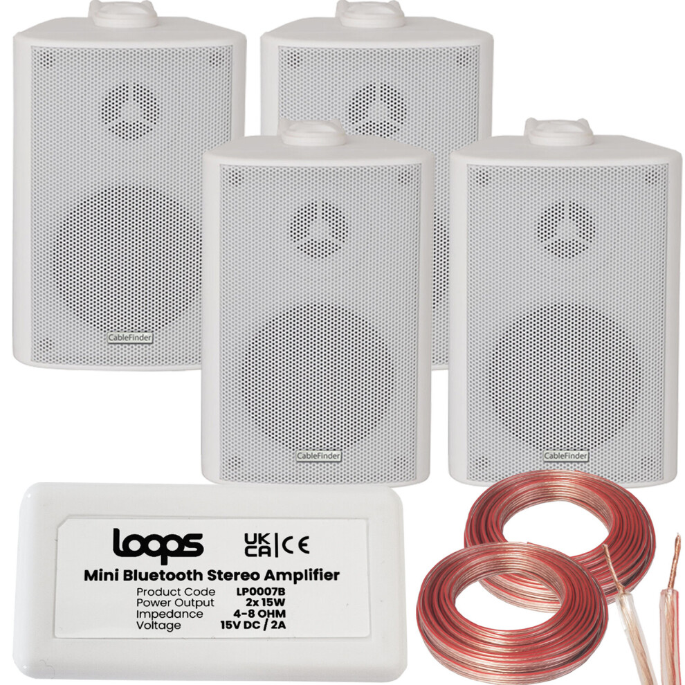SMART HOME Bluetooth Amplifier & 4 White Wall Mount Speaker Kit Compact HiFi Amp