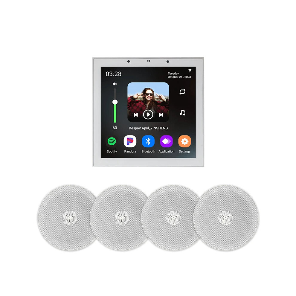 Smart Home Wall Amplifier: 4-Inch Android 11 WiFi Speakers with Alexa & Tuya Control