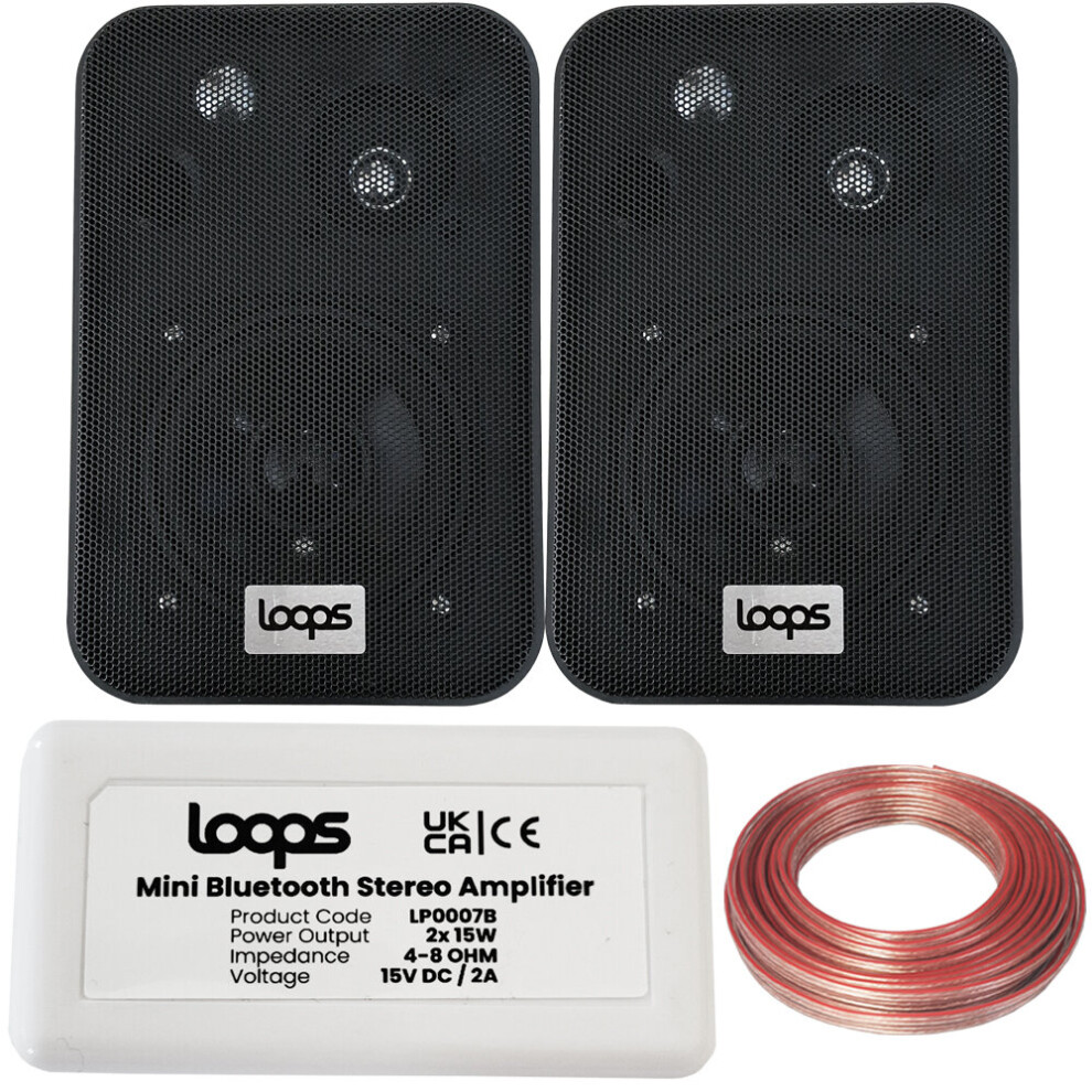 SMART HOME Bluetooth Amplifier & 2 Black Wall Mount Speaker Kit Compact HiFi Amp
