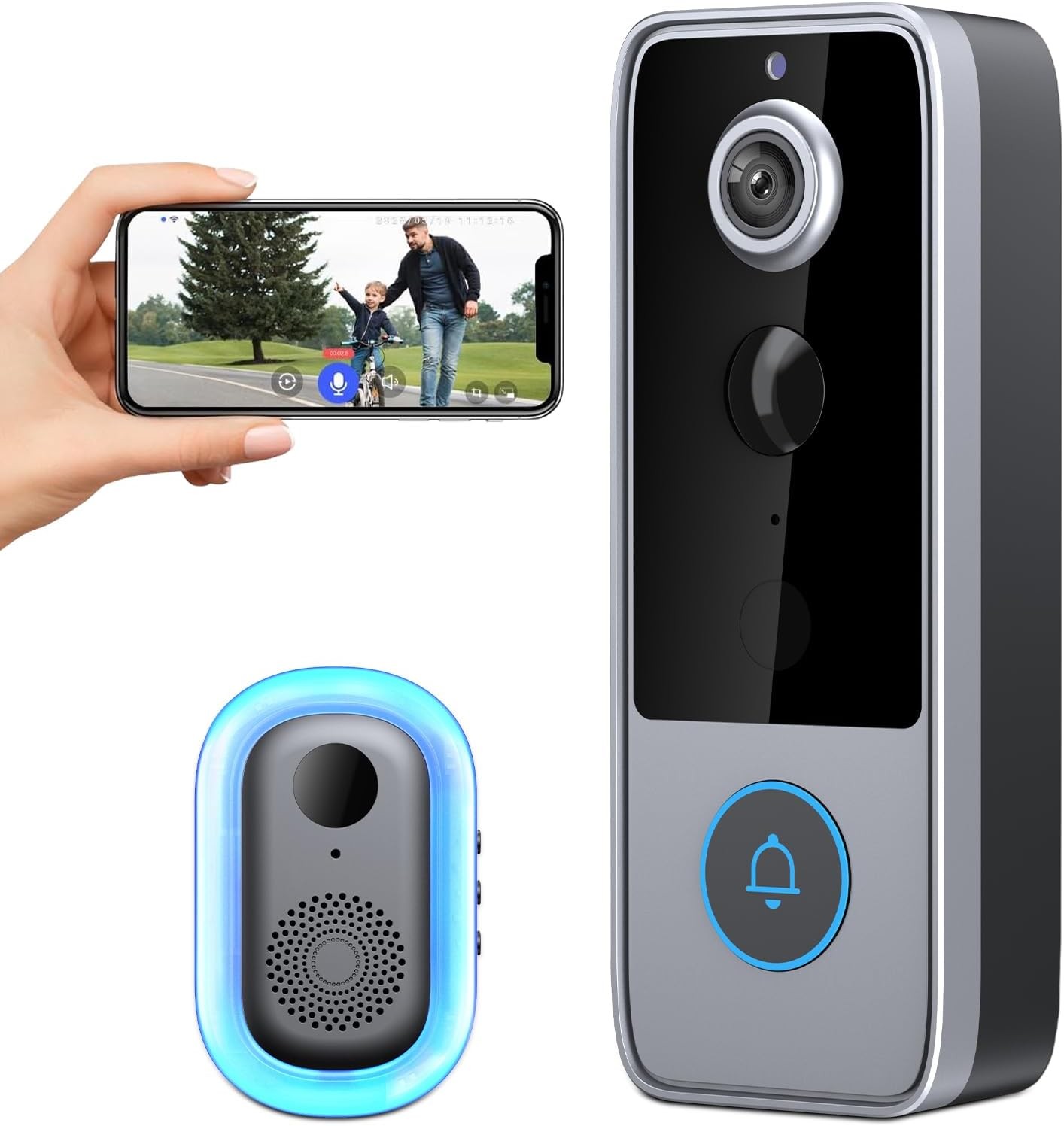 XTU Wireless WiFi Video Doorbell Camera, 2K HD Smart Video Door bell with Camer