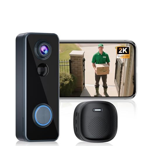 Wireless Doorbell Camera with Chime, 2K HD Smart WiFi Door Bell Cameras,Head-to-Toe View, Battery Operated, PIR Motion Detection, 2-Way Audio, Night Vision, SD Card & Cloud Storage,Works with Alexa