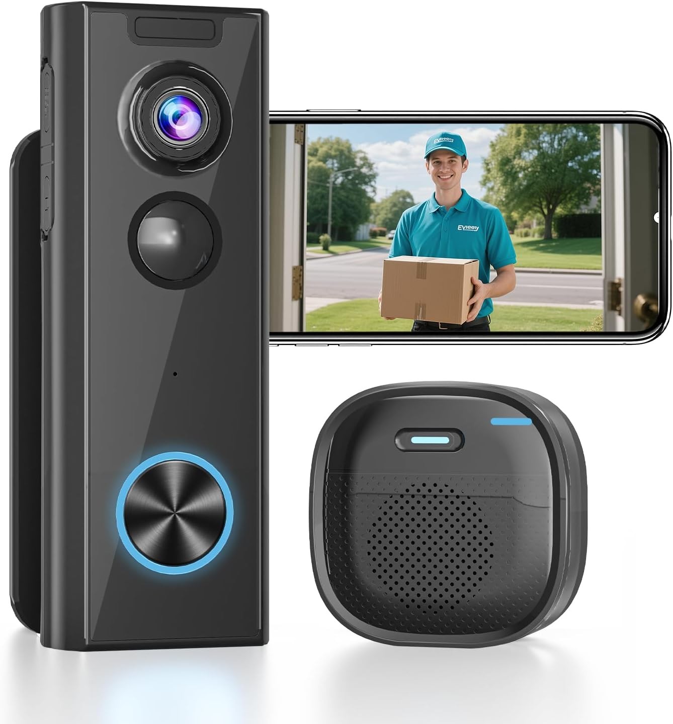 XTU Video Doorbell Camera Wireless, 2K HD Smart Door bell Camera Head-to-Toe Vi