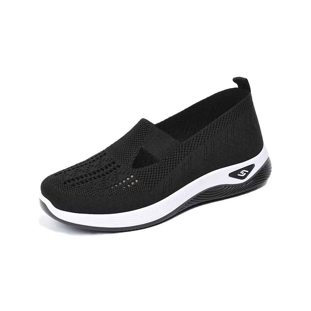(Black, Tag 41=UK7) Ladies Smart Trainers Work Memory Foam Shoes Womens Walking Casual Slip On Size