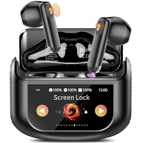 Wireless Earbuds with Smart Touch Screen, 2026 Mini Sleep Earbuds Bluetooth 5.4 Headphone In Ear with Noise Cancelling Mic, 48H Playtime Hi-Fi Stereo Sound, 5 EQ Modes/IP7 Waterproof Ear Buds Black