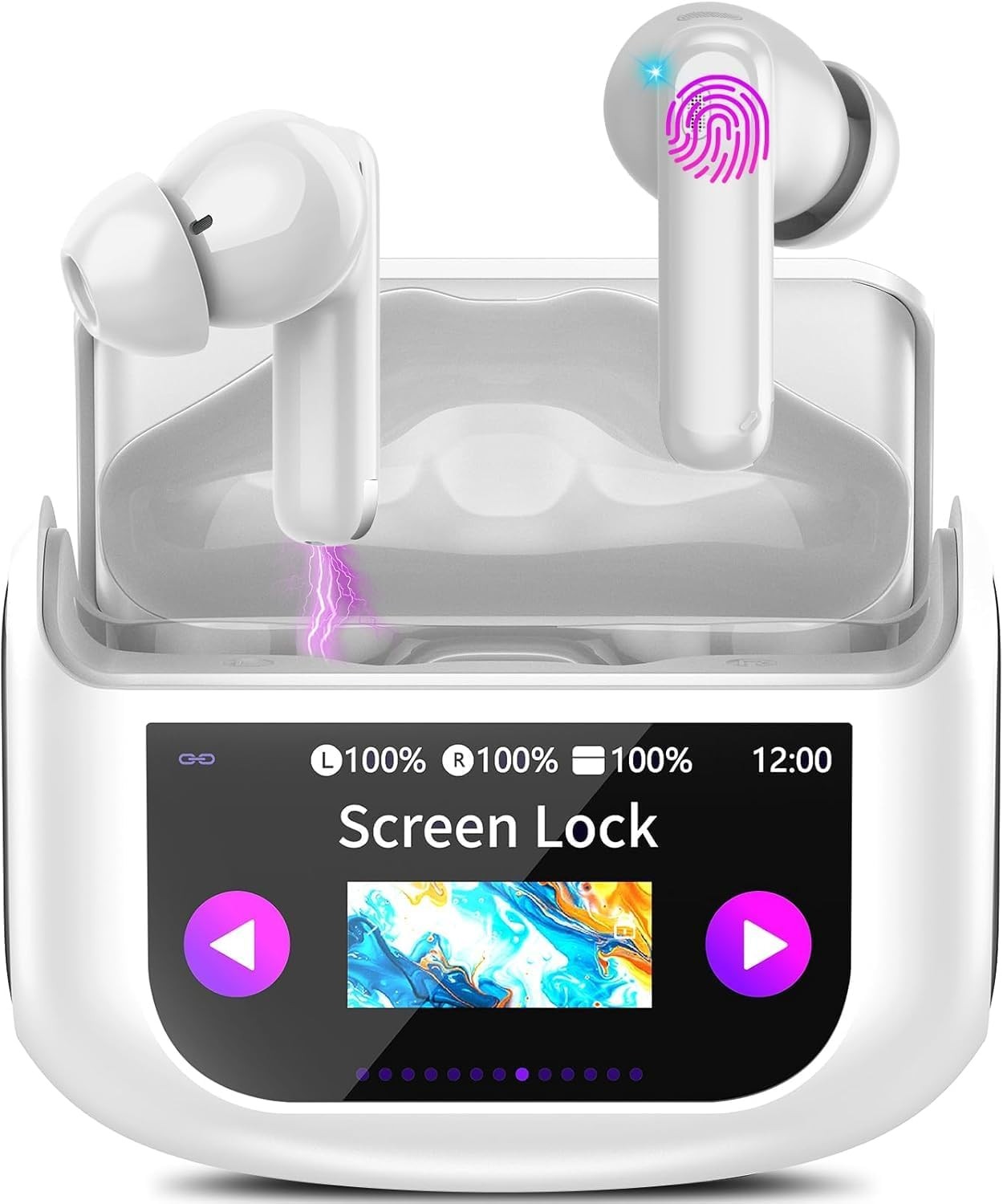 Wireless Earbuds, 48H Smart Touch Screen Ear Buds Bluetooth 5.4 Headphones, ANC