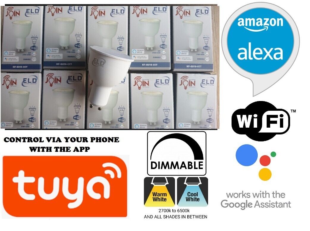10 x White LONG NECK 71MM GU10 Smart Bulb App Alexa 4.5w LED Dimmable WIFI lamp